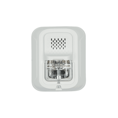 Sirena para Montaje en Pared, 12 a 24 Vcc, Color Blanco, Nuevo Diseño Moderno y Elegante y Menor Consumo de Corriente