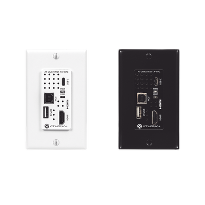 Placa de pared con Switcher y Transmisor HDBaseT con entradas HDMI y USB-C con concentrador USB para integración de AV