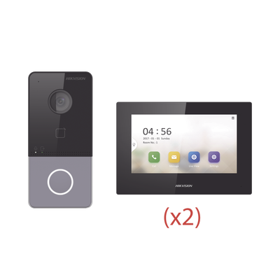 Kit de Videoportero IP LITE con llamada a App de Smartphone (Hik-Connect) / Apertura con tarjeta / Soporta PoE Estándar / Incluye 2 MONITORES