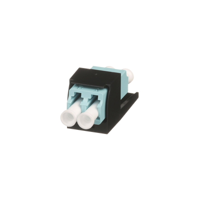 Módulo Acoplador LC Duplex, para Fibra Óptica Multimodo OM3/OM4, Tipo Mini-Com, Color Aqua