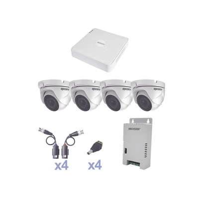 KIT TurboHD 720p / DVR 4 Canales / 4 Cámaras Eyeball 92° visión (exterior) / Transceptores / Conectores / Fuente de Poder Profesional